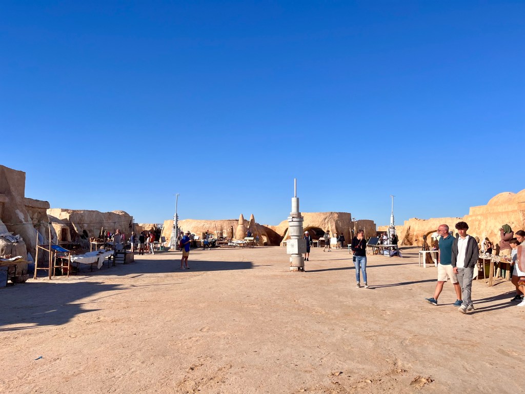 Nous roulons de longues minutes, si bien que je comprends tout le sens de l’expression « aller à Tataouine »… Et oui ! Nous arrivons, au milieu du désert, dans le décor qui a servi pour Star Wars. Bien qu’un peu délabré, il fait son petit effet.