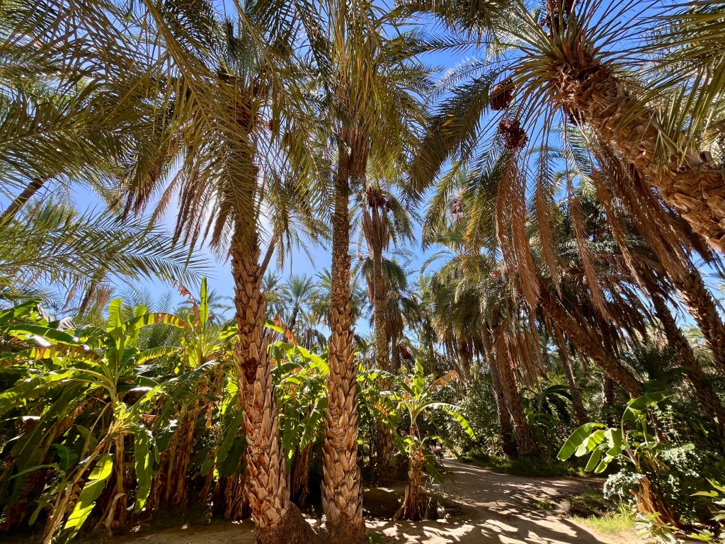 Nous nous arrêtons pour découvrir une plantation de dattiers. Notre guide prend le temps de nous expliquer la particularité de cette culture. A notre grand bonheur gustatif, nous découvrons même le jus de palmier.