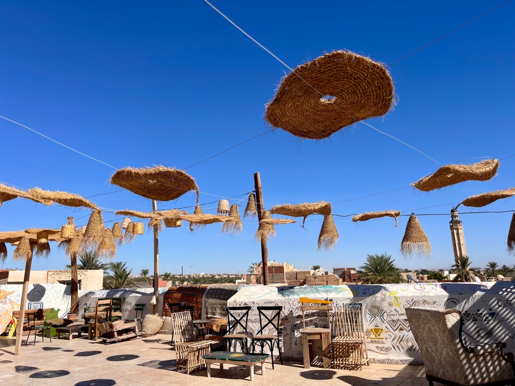 Nous partons à la découverte d’un autre versant de la ville : la médina. Les ruelles étroites semblent avoir emprunté leurs couleurs au désert saharien. Nous profitons de la vue au sommet du Café Berbère. Et grâce à un combo incroyable, nous retrouvons toute notre énergie : thé à la menthe et amandes grillées.