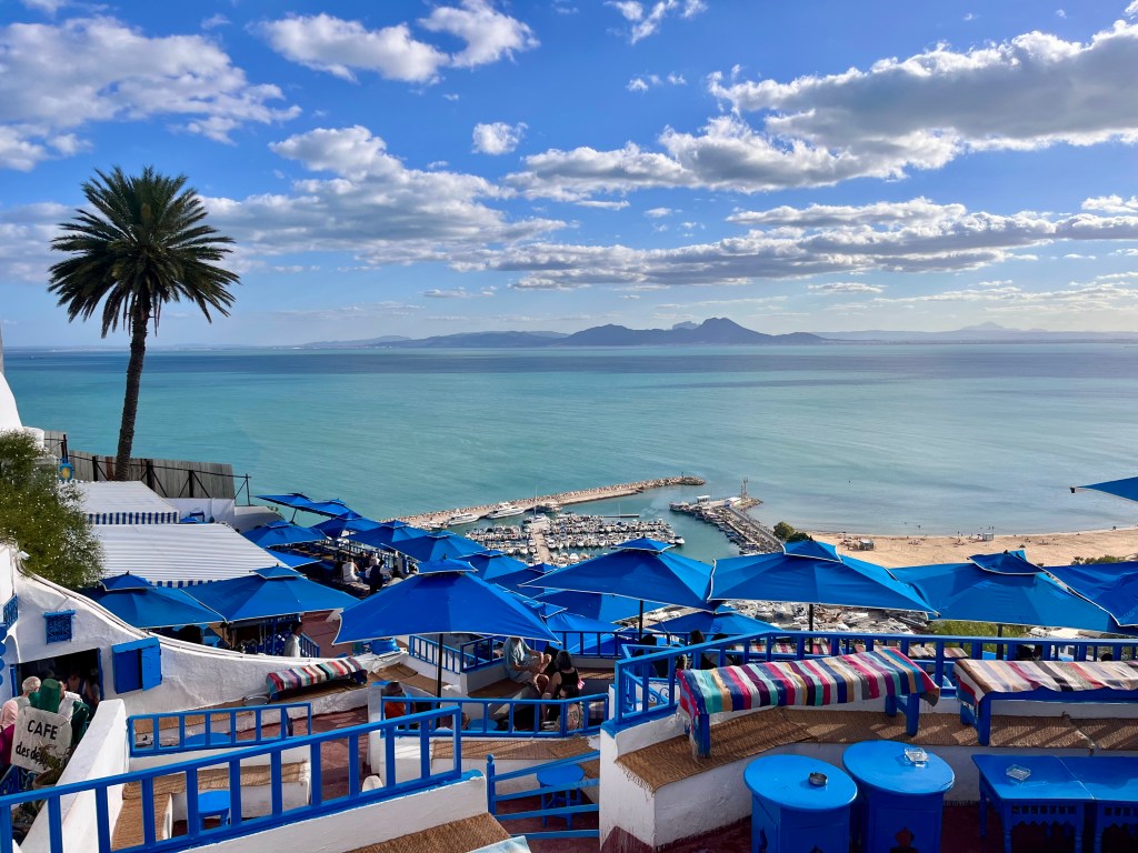 Comme beaucoup nous l’avaient déconseillé, nous n’avons pas pris de collation au Café Sidi Chebaane (le fameux café des Délices de la chanson). Mais il aurait vraiment été dommage de passer à côté du point de vue depuis ce lieu.